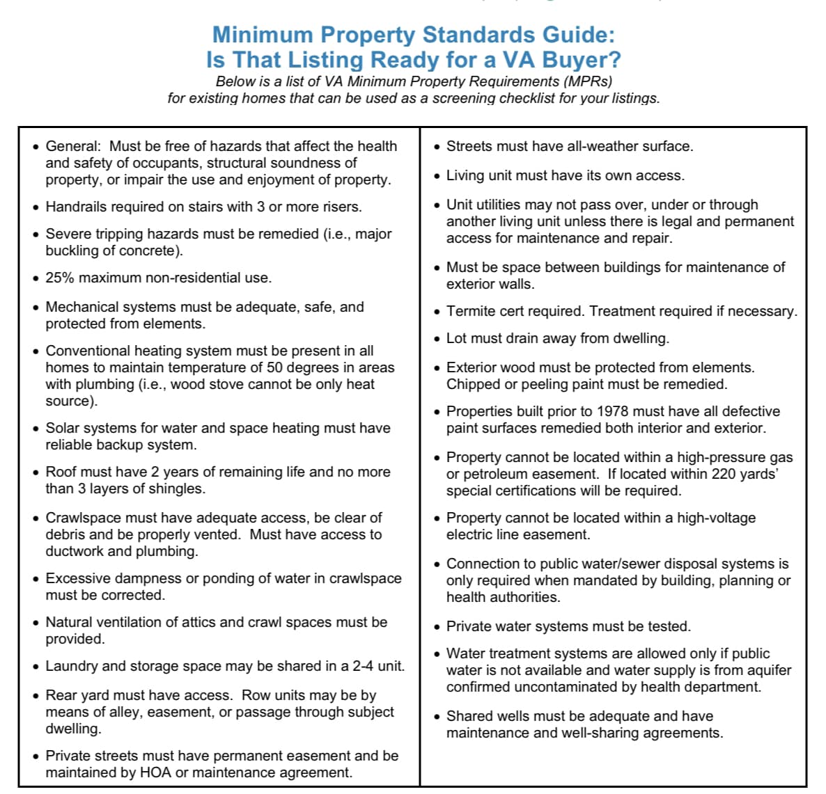 Kentucky VA minimum property standards for a VA Mortgage Approval